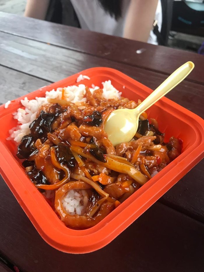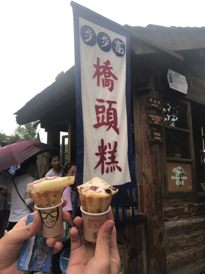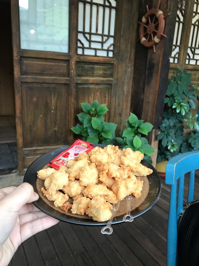 拍了照片后,我们就下山去逛逛古北水镇~没什么指定的地方要去,所以我们先是选间咖啡店品尝果汁和吃盐酥鸡休闲一下,然后都是走走看看吃小食如:桥头糕(吃了步步高升),烤红番薯,炸鱿鱼等等....回时雨停了,还看见天空中的彩虹。晚上的长城会开灯,很壮观,很美~然后就搭上巴士(大约2小时)回到城市,还好来得及搭地铁回民宿。从地铁站出来,路过一档煮炒档口就顺便打包了炒面和炒饭,份量很大分,不错吃~