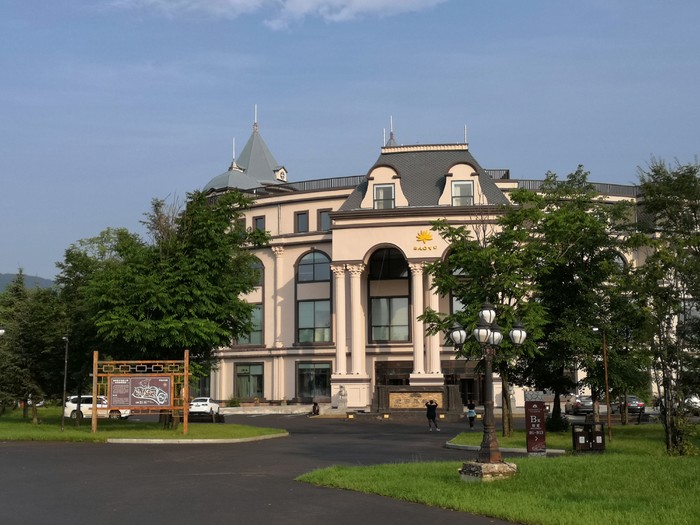 欧式风格的酒店,有独栋别墅,还有快捷标间,标间在另外的楼,设施一般,有点像招待所,但还算干净整洁。选择这家酒店的原因,一是温泉,二是环境。办好入住,开始体验小兴安岭的特色温泉,室外温泉池不算多,人也不多,刚进去不久,倾盆大雨劈头浇下,只得跑回室内游泳池避雨,不一会雨渐渐停了,继续享受温泉时光……