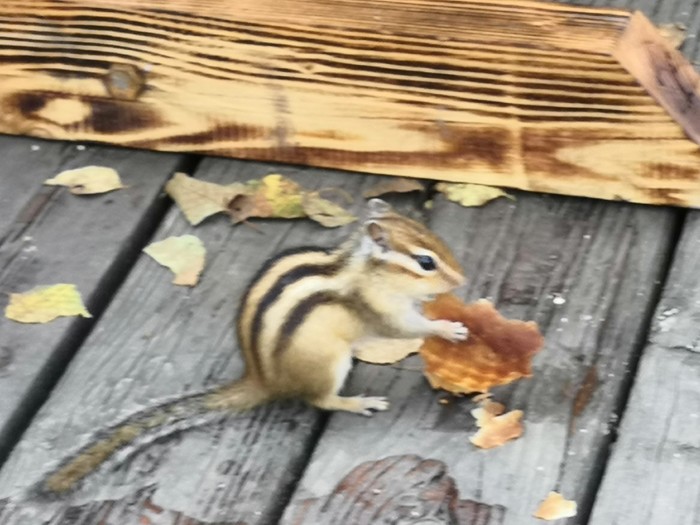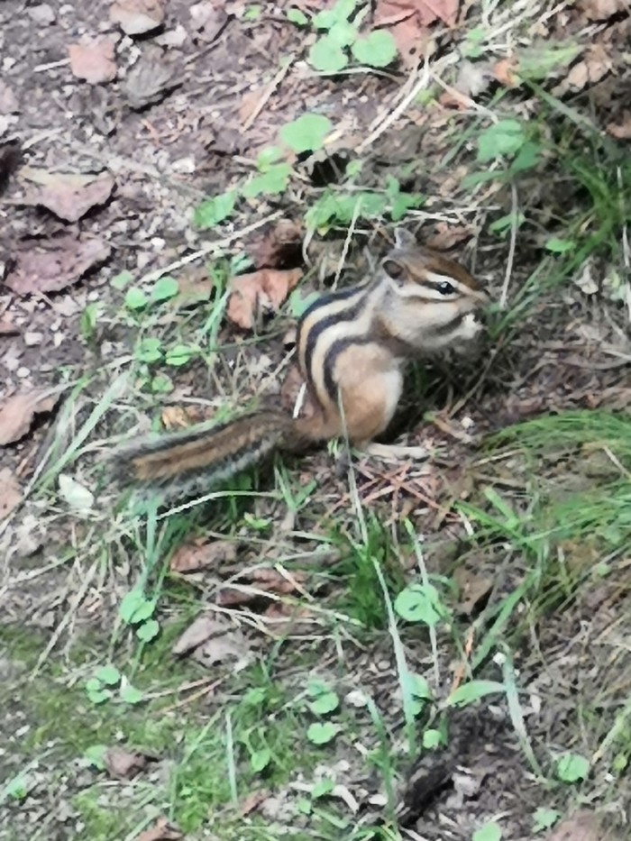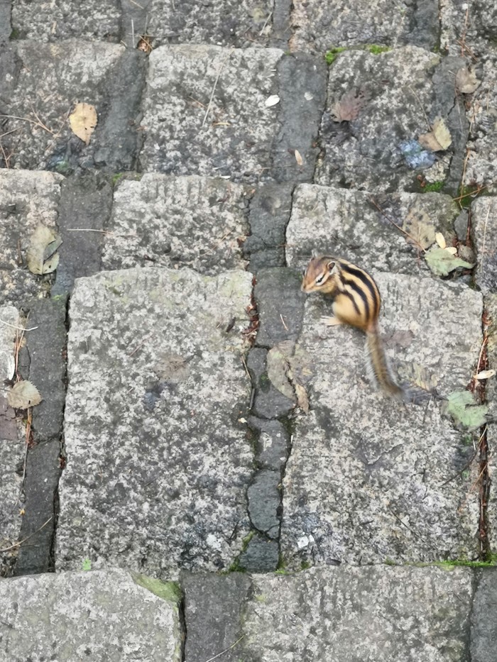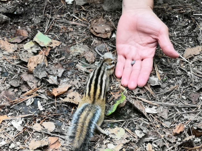 眼前是茫茫的大森林,沿途脚边都是跑来跑去的花栗鼠,个头瘦小,身手敏捷,我把随身带的瓜子和坚果掏了个遍,它快速地吃掉就跑了。