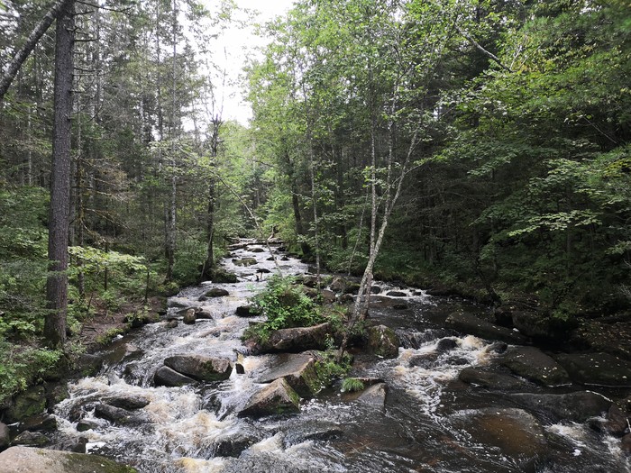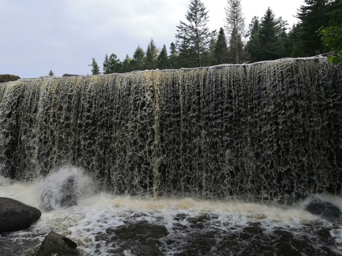 我们步入栈道,顺着古道河,来到瀑布旁。