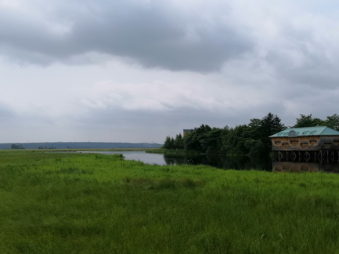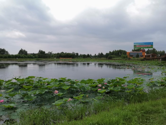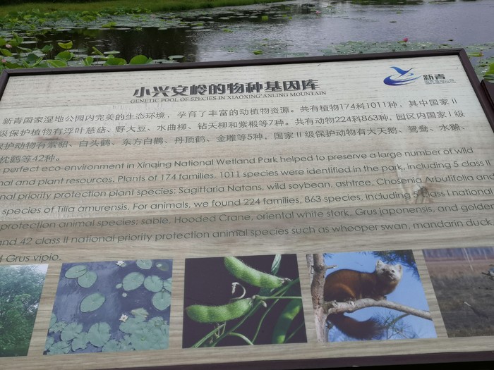 第三天早餐后,离开汤旺河,返回伊春方向。沿途经过新青国家湿地公园,这里是珍稀濒危鸟类白头鹤的重要栖息繁殖地。园内还在维护,但不影响游览而且不收门票。一进门映入眼帘的是荷花池,“四顾山光接水光,凭栏十里芰荷香”,黄庭坚的诗用在这里很贴切。