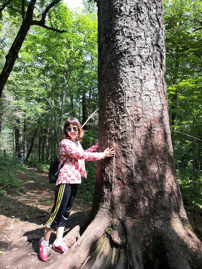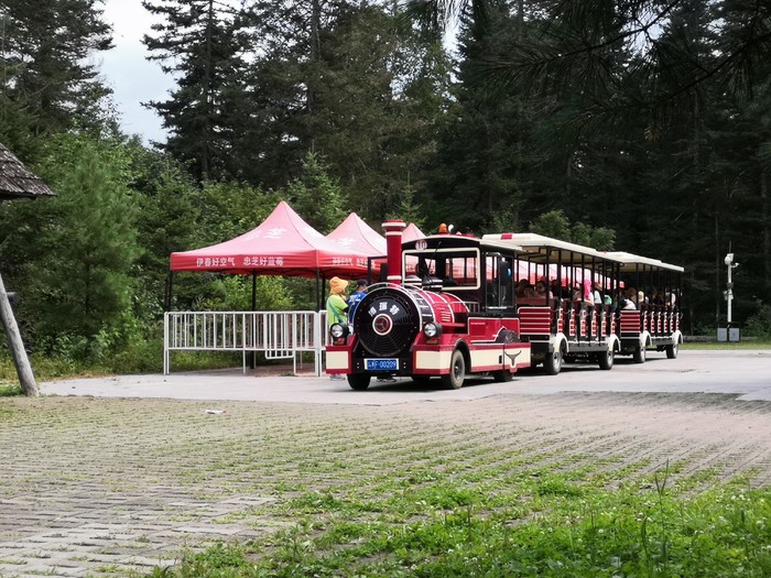 我心心念念想坐森林小火车,工作人员说在园中园里,我们又原路走回到少奇号,今天是最潮热的一天,再加之树林密度大,空气中感觉都能透出水气,衣服都湿透了,好像回到桑拿天一般。回到原点,还是没有找到小火车,还好找到景点的人员询问,终于得到答案,少奇号是小火车,但是不能坐,能坐的小火车就是小火车形状的观光车。原来兜兜转转一圈,是概念的不对称,哎,是我太执着了。不过五营还是值得一去的,虽然是4A景区,较5A的汤旺河景区来说,工作人员多,态度也好些,有问题可以询问,汤旺河景区地儿大,走好远都没有工作人员,观光车也少,不太方便。五营和汤旺河的区别在于,五营的红松林比较壮观,是天然大氧吧;汤旺河的奇石有特色,景点相对分散,体力消耗大。