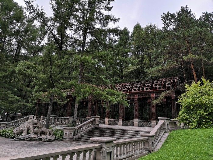 赏完林海,走下兴安塔,外面已然下起雨来。狂风裹挟着大雨,滂沱而至,一扫昨日的潮热。无奈只得在塔内避雨,同时也庆幸没赶在下山途中下雨,否则肯定很狼狈。时间一分一秒过去,大雨如注。两个半小时后,雨逐渐变小,我们趁着还有一辆观光车在,忙下山去。观光车急驶在林间小路,雨滴落在脸颊,风吹的头发肆无忌惮地挣扎,吹透了衣衫,冰冷刺骨,这是对昨日暑热的嘲笑,让我真正体会到东北的凉爽。