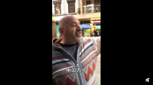 澳洲街头老外怒怼港独 对方无奈抢走话筒