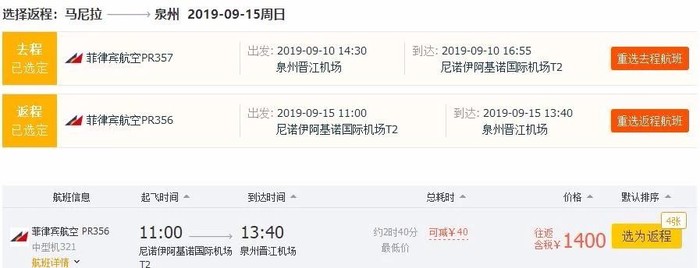 菲律宾航空非廉航,含行李、餐食,舒服度不错,上述价格可以入手;如果追求更高的性价比,则可以选择宿务航空,经常会有促销,促销期,几百元便能含税往返。