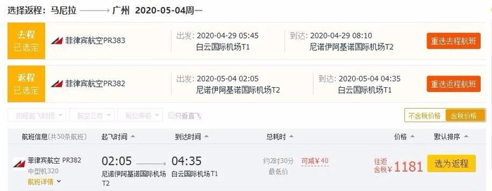 广州=马尼拉,券后含税往返1118元,跨中秋;