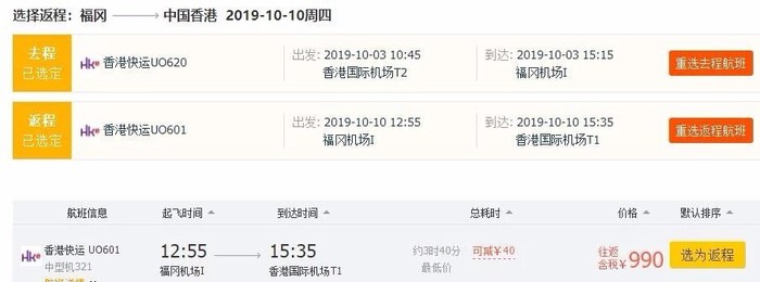 香港=福冈,券后含税往返950元,国庆期间;