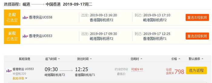 香港=岘港,券后含税往返758元,中秋期间;