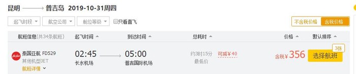 昆明-普吉,券后单程含税316元;