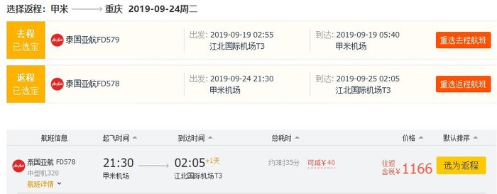 重庆=甲米,券后含税往返1.1K;