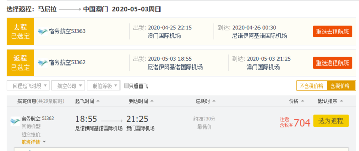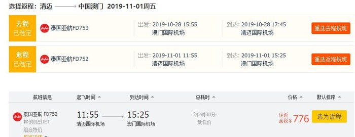 澳门=清迈,含税往返776元;