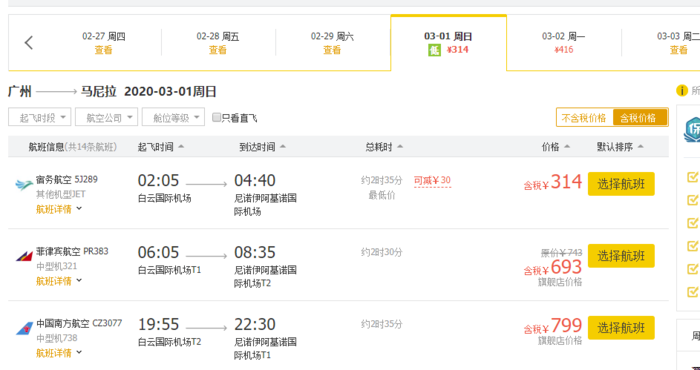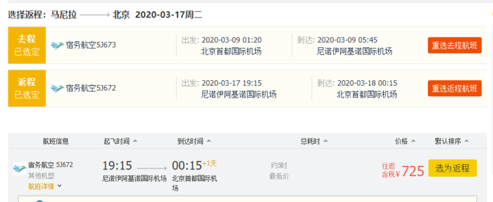 北京/上海/广州/厦门 → 马尼拉