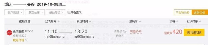 重庆-曼谷,券后单程含税380元;