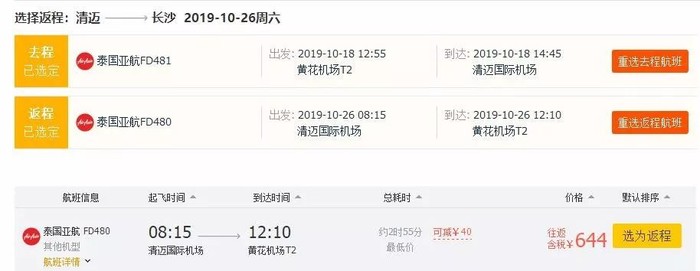 长沙=清迈,往返含税604元;