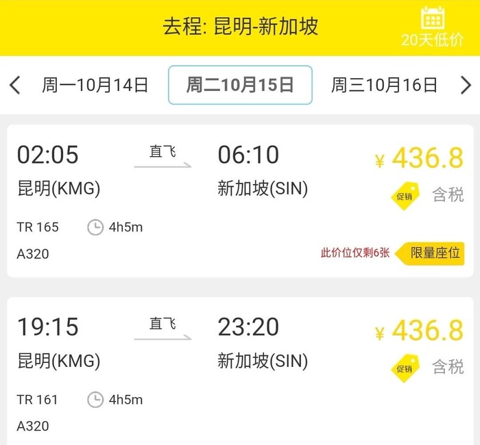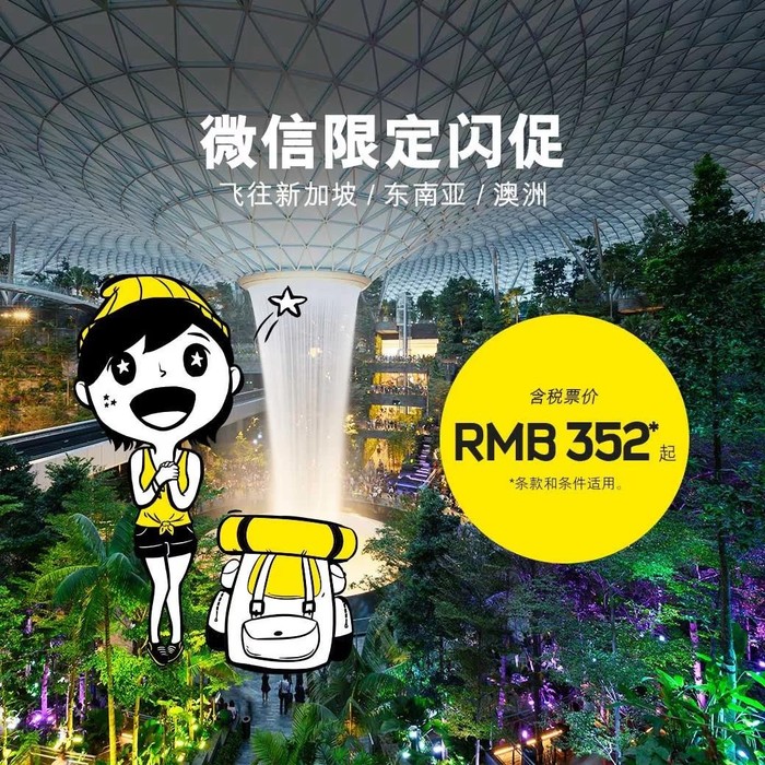酷航微信限定闪促,含税352元起飞新加坡、东南亚、澳洲