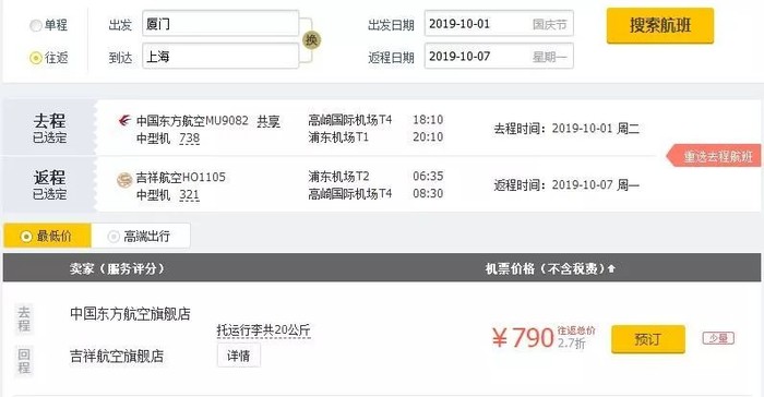 2、上海=厦门,含税往返890元,正国庆,不用请一天假;