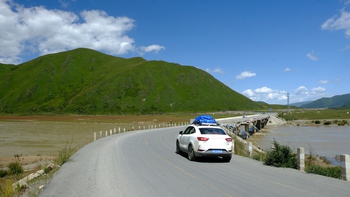 重庆往返,提车时该车已经行驶1.7万公里,轮胎轻微磨损,其他状态良好,还车时记录里程4387公里,沿途共加油2886元。约每公里0.66元。其中约3000公里是在海拔3500米以上行驶,动力未感到不足,进入久治到黄河第一桥段,路况非常好,虽然是海拔3600,跑到160公里速度,转数在2600左右。操控也不错。在炮弹坑。沟壑土路也不是很颠簸。在4231米钙化坡冲坡漂移,过河沟,四驱也能给予足够动力,未遇到打滑情况,从4582米牙哈垭口,连续方向急弯,行驶约2公里极窄碎石土路+炮弹坑+水流沟壑,到达玉龙西村碎石村路,海拔降至4160米,算是本行程最危险一段,开陡坡缓降及手动挡下山,比较容易控制速度,下山全程无会车位,幸好也无车来。