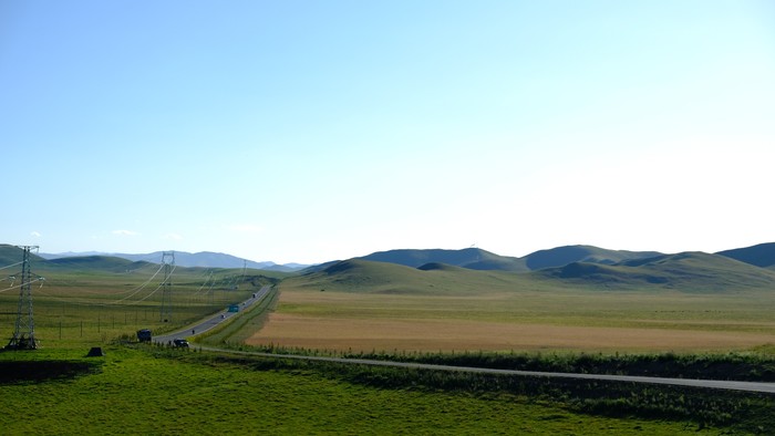 出久治往玛曲,导航阿万仓方向,在沙木多黄河桥进入甘肃,沙木多才是真正的黄河第一桥,玛曲算是最早建的吧。过沙木多不久就像进入高速路且笔直入云,且周边是宽阔的大草原,心情格外好,终于走出大山进入一望无际的草原,视线所及皆牛羊马成群,这里是河曲马产地。道路上车也不多,是比较适合拖个箱子拍流浪照的地方,虽然不能面朝大海,好歹能喂马捡牛粪看黄河九曲。