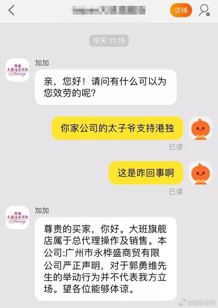 8月30日,@香港大班冰皮月饼在微博上发表声明,称这“纯属郭先生自己的行为,并不代表香港大班面包西饼有限公司的立场。”该声明下附带着郭勇维此前在Facebook上的道歉声明。