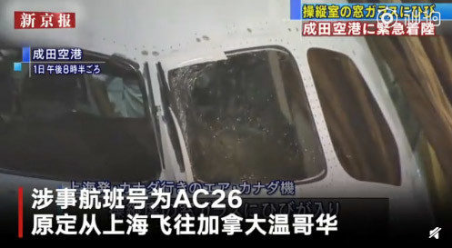 @新京报:1日,加拿大航空一波音787客机因驾驶舱挡风玻璃破裂,备降日本成田机场。涉事航班号为AC26,原定从上海飞往加拿大温哥华,飞机起飞3小时后,挡风玻璃出现裂痕,飞机随后备降成田机场,299名乘客和机组人员安全撤离。