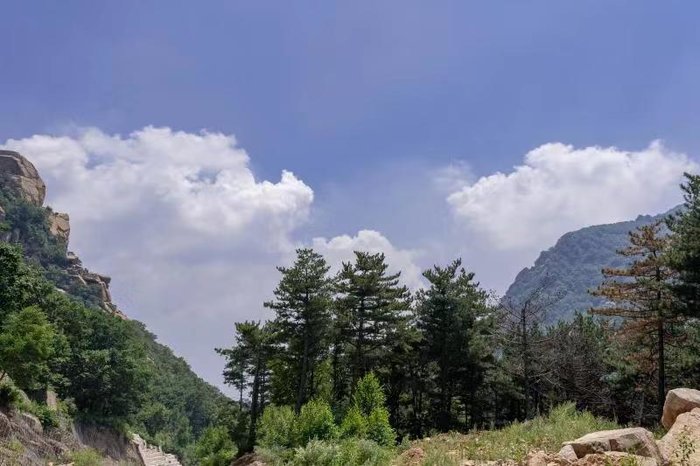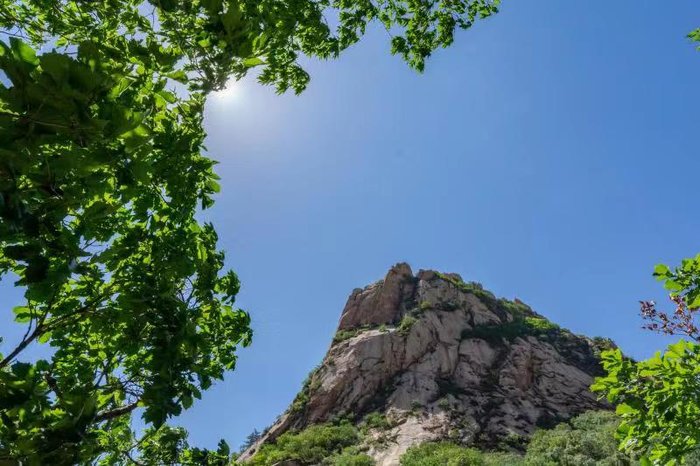 登顶之路,尽处可见苍松挺拔,青草葱翠。山间微风袭过,花香四溢,馨香扑鼻。抬眼望去,蓝天白云,高山飞鸟,在巨石形成的台子上,静静地坐下,微合双目,呼吸着新鲜的空气,倾听着清脆的鸟鸣,感受着自然的幽雅宁静,在纷杂的尘世中追寻内心的安宁。