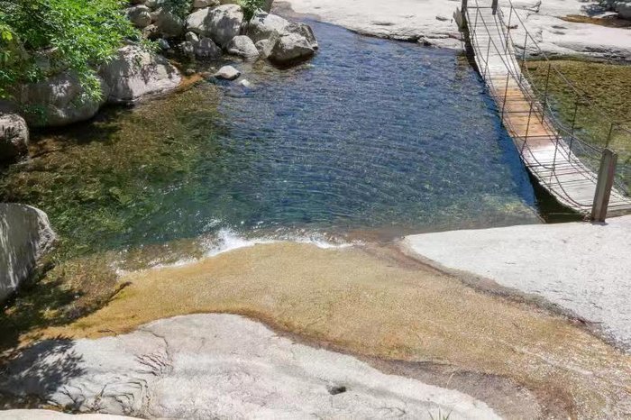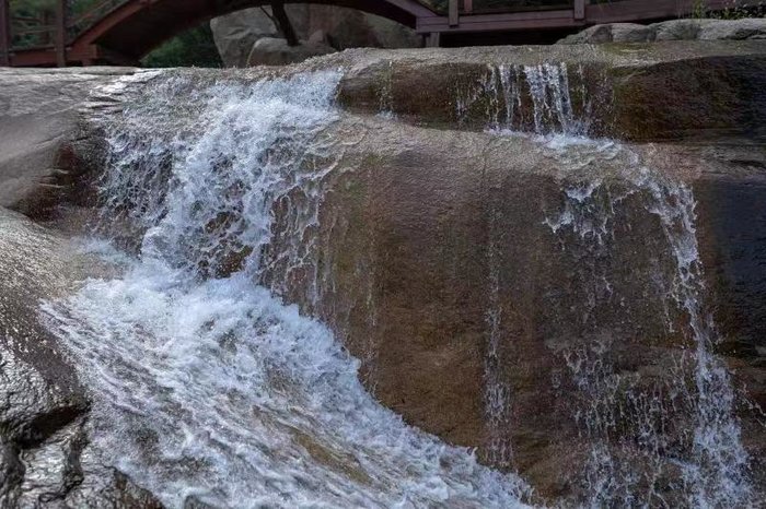 下了观光车,再走几步,就到了画廊谷,涓涓流水顺石而下,没有飞流直下三千尺的雄浑,却独具小桥流水人家的温馨。溪流之上的栈桥,更是将这种古典美发挥到了极致,一石,一水,一桥,一亭,千金不换。