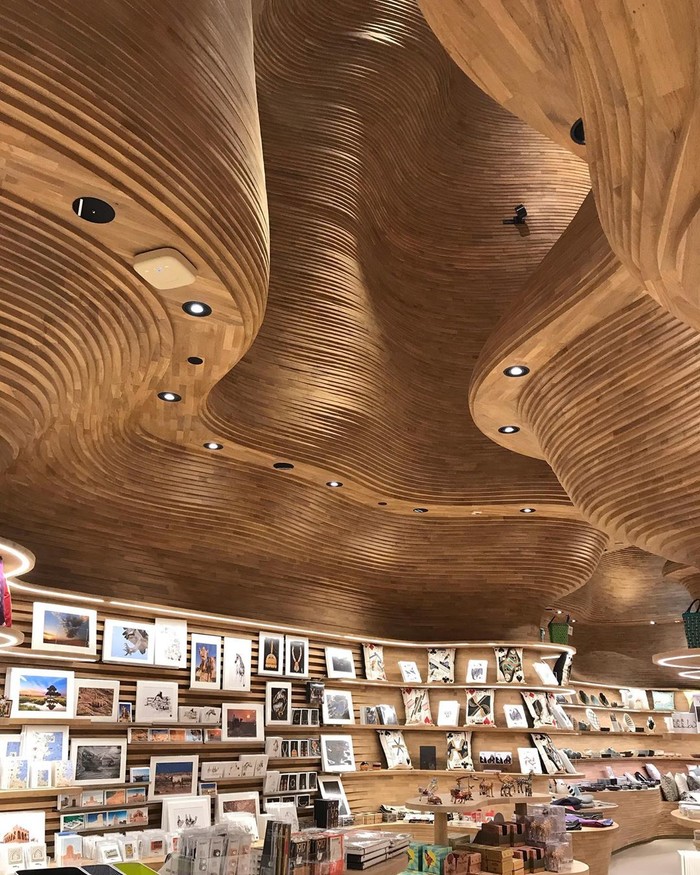 博物馆充满美学设计感,干净的白色石灰石几何式交叠,简洁大气。