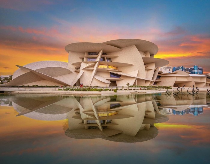 由建筑师让·努维尔设计,他表示博物馆的建筑结构象征着“沙漠玫瑰”这一神奇的自然现象,它将让观众联想到沙漠和海洋,感受卡塔尔国家的漫长历史。