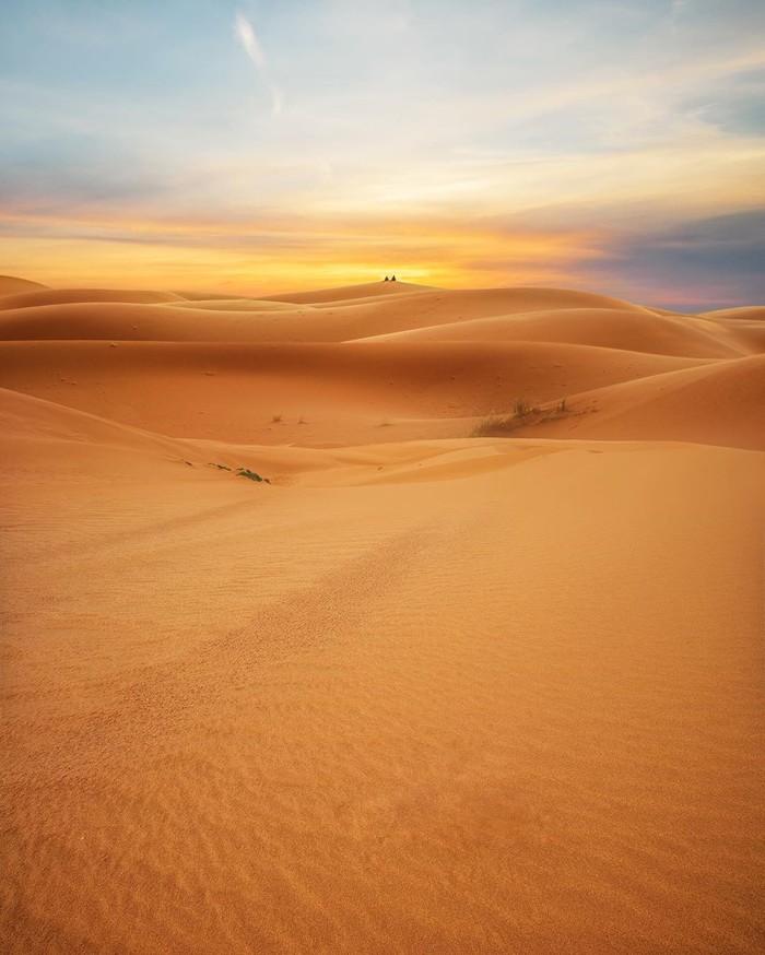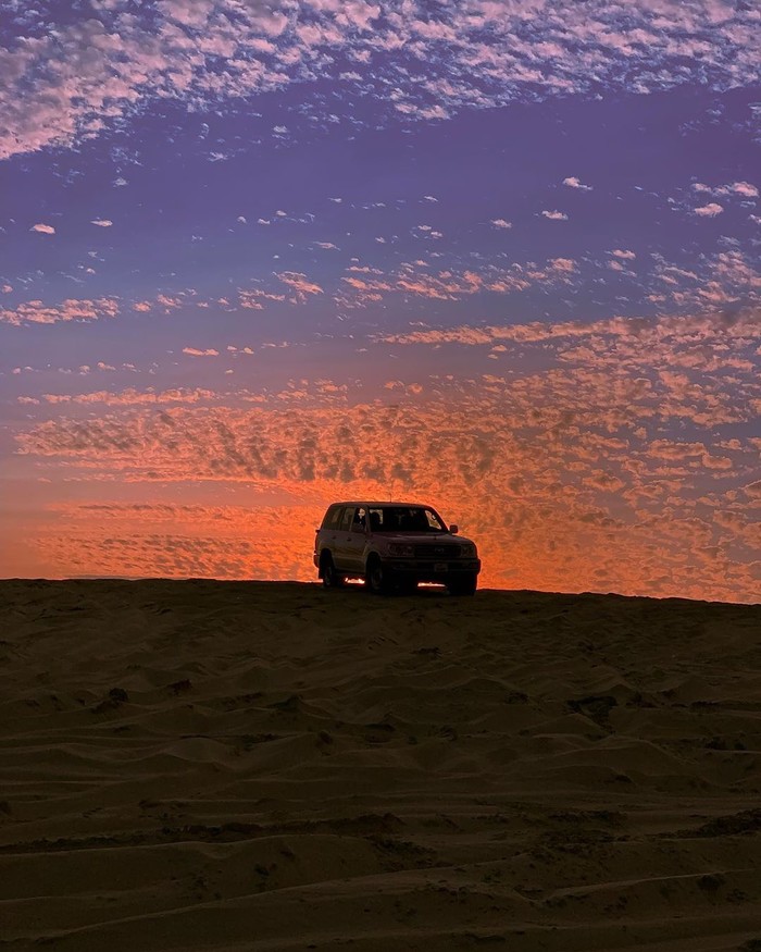 傍晚欣赏沙丘落日,夜宿沙漠,感受万物空灵的寂静。