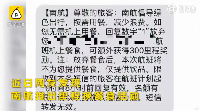 南航推取消飞机餐换里程抵换活动 :需提前预订,已在200多个航班实行