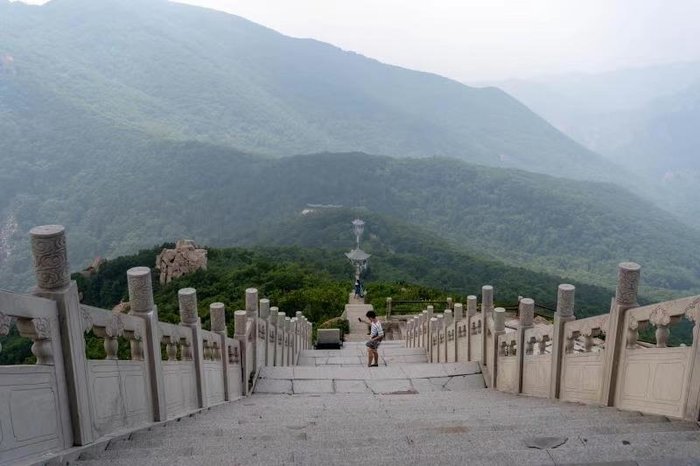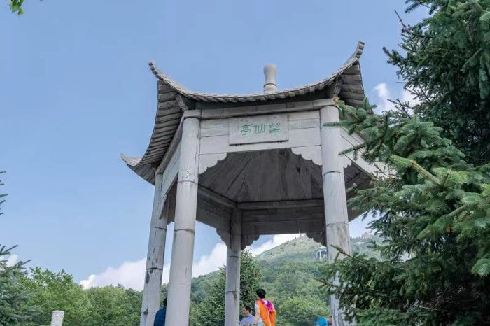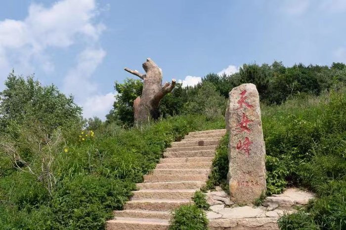 我们歇了会儿脚,攀登海拔1428米天女峰。不到二十分钟,天女峰便踩在脚下。此时,瞻仰天女,远眺美景,山河壮美,收揽于心。