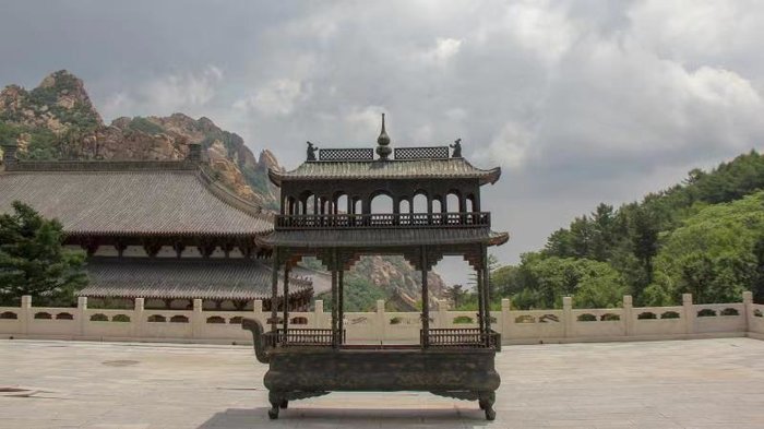 下山时,途径“望海禅寺”。院落崭新、红墙灰瓦、高大庄严,登到顶峰的我们已经没力气再逛了,只得在寺外观望一番,便匆匆下了山。