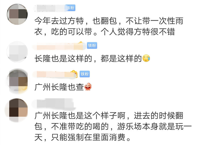 除了迪士尼,部分网友称长隆、方特等也是要翻包的: