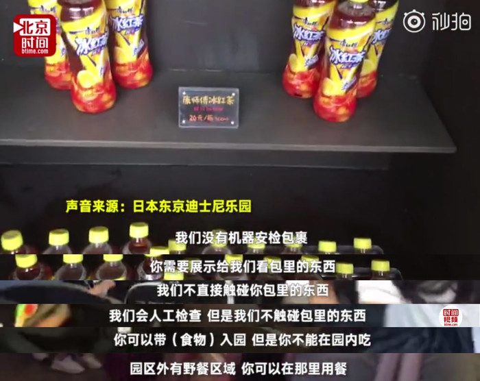 @时间视频 联系日本东京迪士尼乐园,工作人员称人工检查包裹,但不触碰包内物品,可以携带食物入园,但自带食物需要出园就餐。