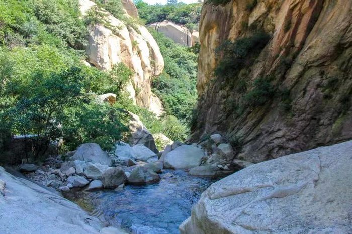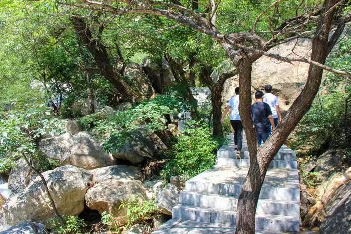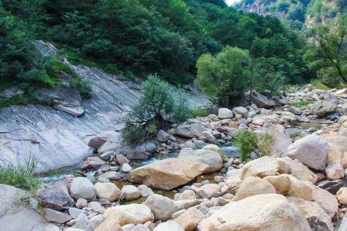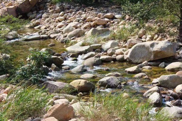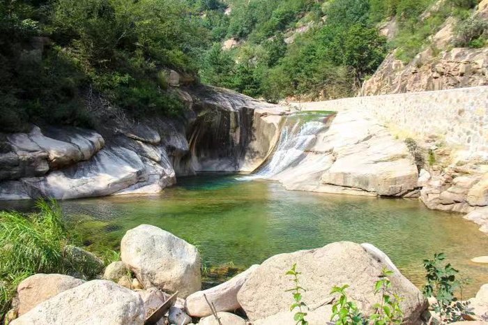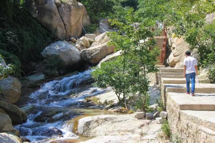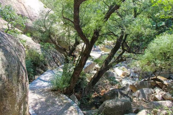 进入忘忧谷,奇石伫立,满是绿植。初秋时节,站在谷内浑身清凉,少了夏日的燥热和烦闷,显得风景更清爽,向里面深入些许,竟听到了水溪声。越是拾级深入,看到的景色便越是丰美。山泉潺潺,清澈透明,偶遇阻拦形成小潭,潭水清澈见底,仔细观看,水中鱼儿游动。大有“碧水香以净,松声吹露华”之感。