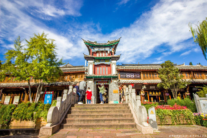 丽江 古城又叫大研古镇,是茶马古道上最著名的城镇之一,已有八百多年的历史。是 中国 为数不多的少数民族古城,被评为“世界文化遗产”:这里有浓郁的民族风情,小桥流水式的布局,错落有致的民居建筑,还有散漫的生活节奏丰富的夜生活。《一米阳光》、《木府风云》等影视剧都在此取过景