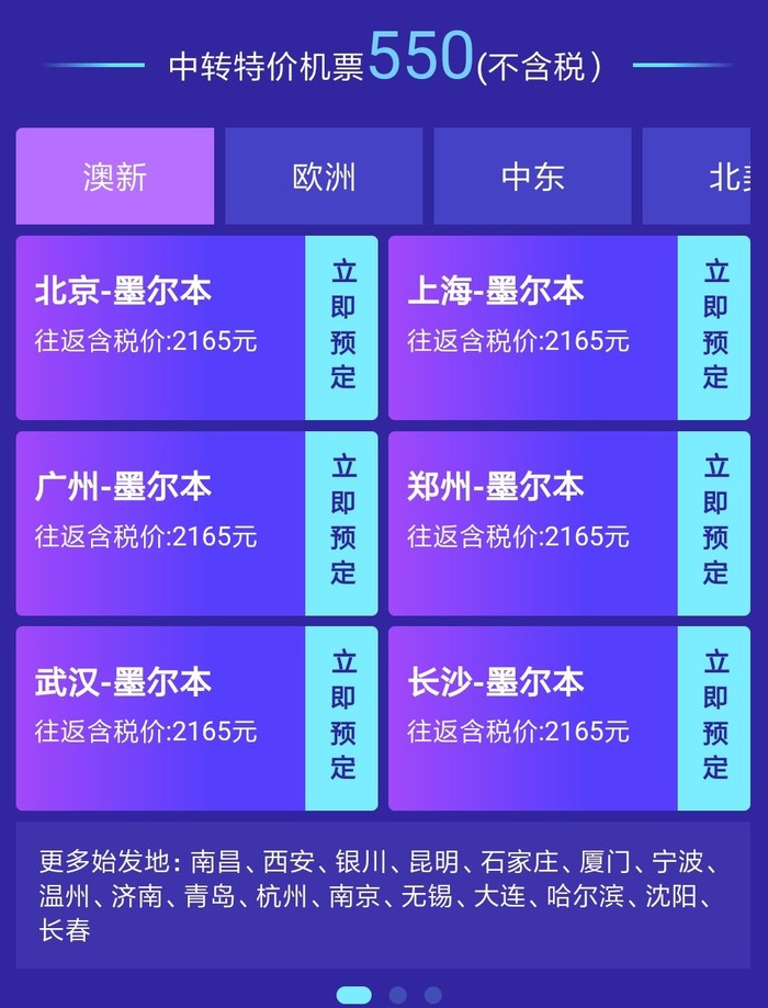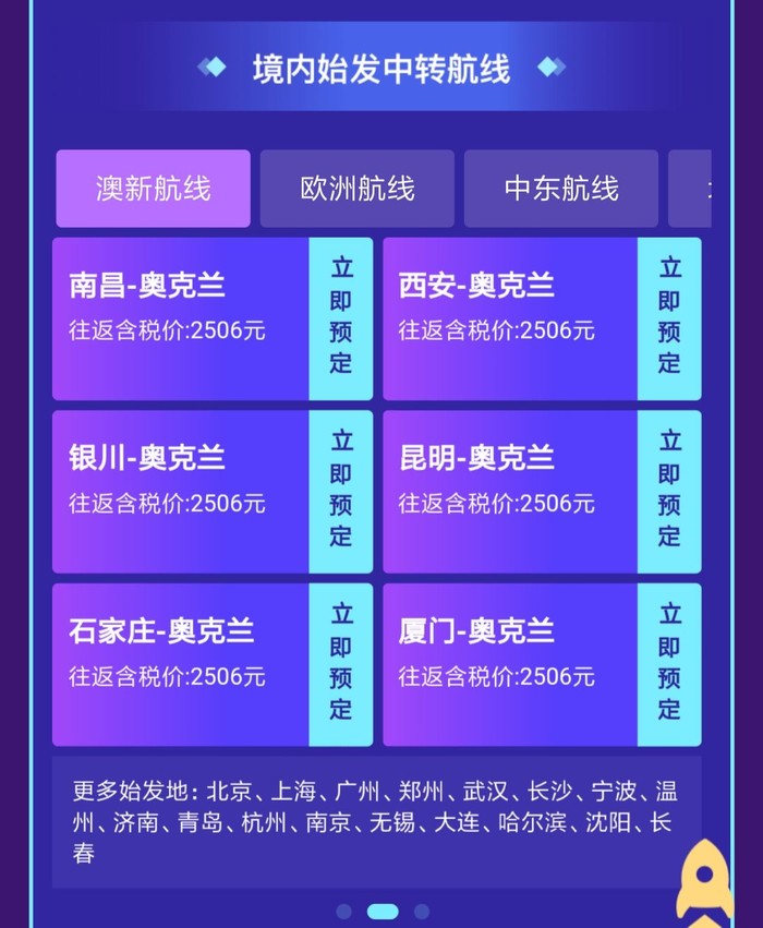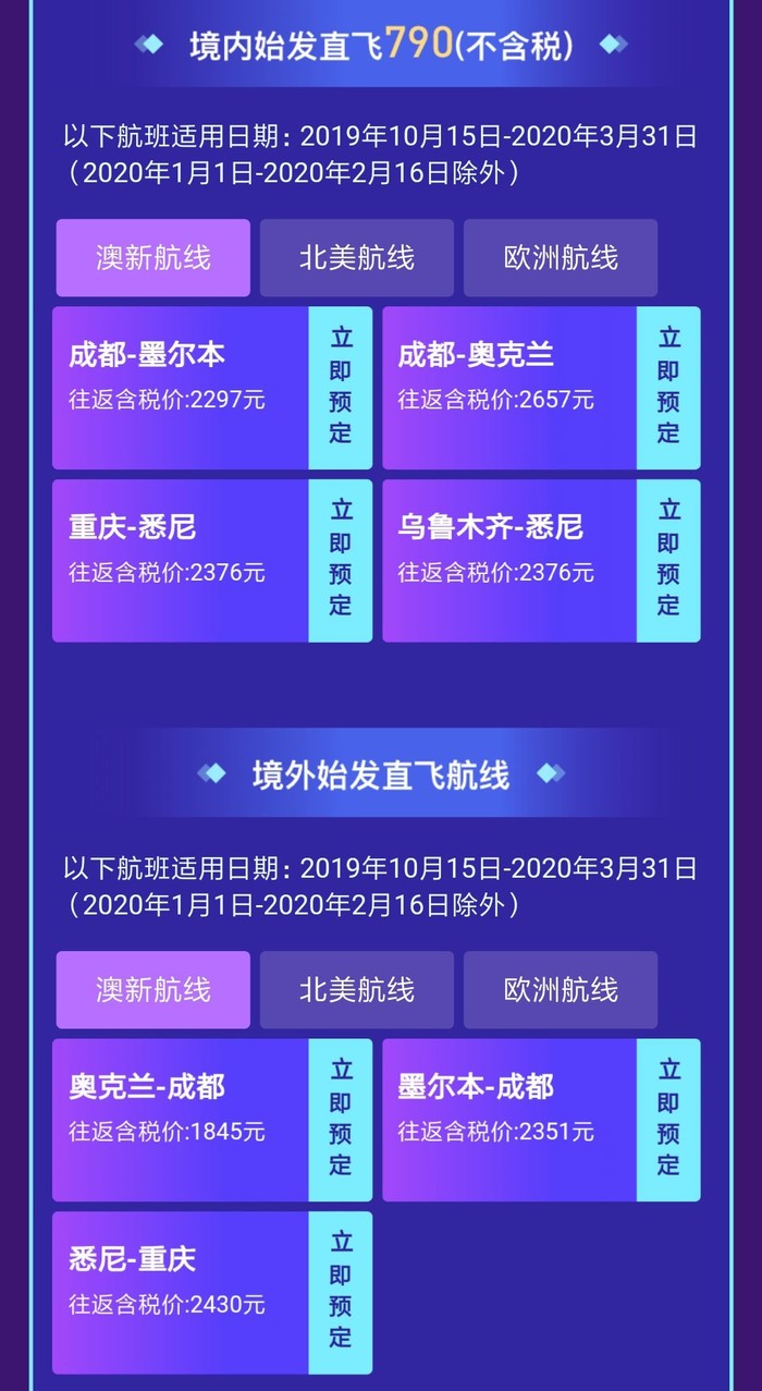 - 澳新始发直飞国内航线和北美始发直飞国内航线,建议与其他平台价格上进行对比之后再入手