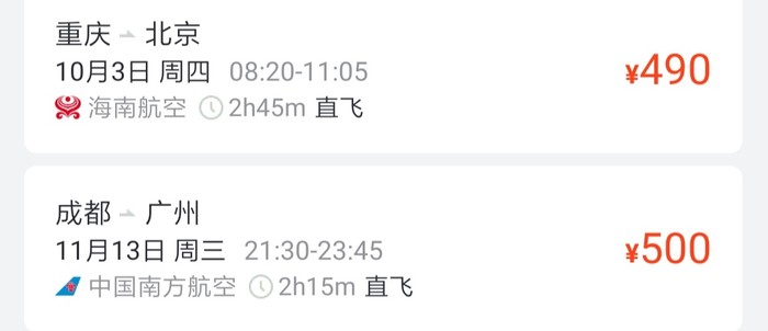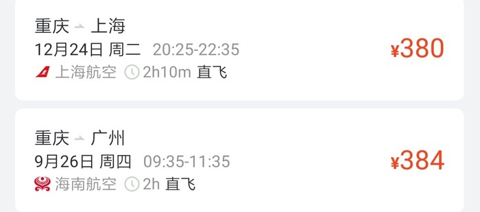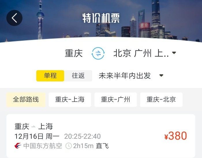 飞猪半年最低价成都飞北京为600元,重庆飞上海380元。飞北上广深仍然非常划算!