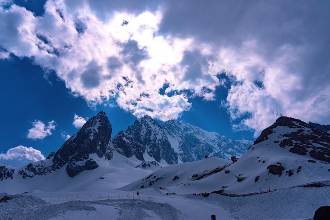 玉龙雪山不是一座雪山,是13座相连的山峰,主峰叫扇子陡,海拔5596米。在丽江的西北面,距离市区大概15公里左右,乘车的话还需要50分钟左右的时间。
