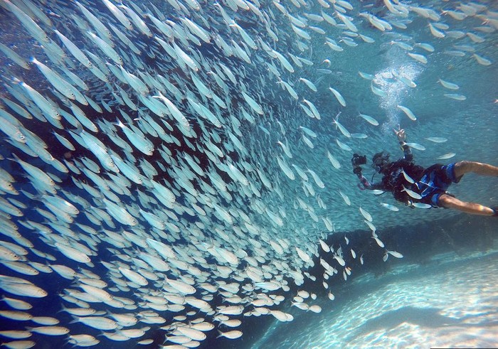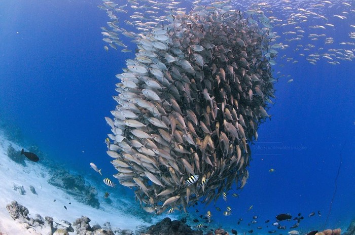 在这里潜水,你可以从浅到深看遍形状各异的珊瑚,随时可以加入规模庞大的海龟队列,在它们的带领下畅游海底。运气好的话,还能见到传说中的JACK风暴,成千上万条白鱼形成飓风眼状的壮观景象,绝对震撼!