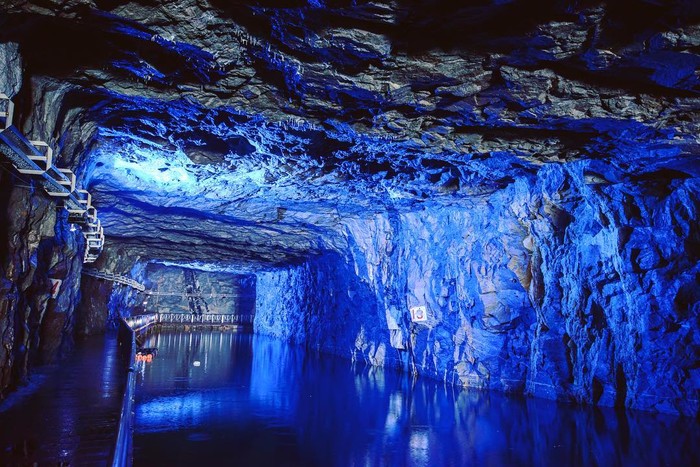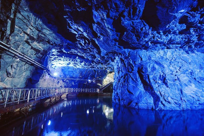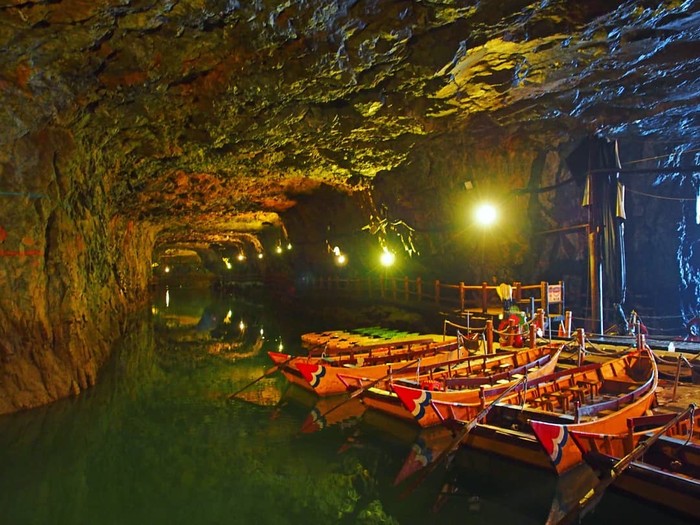 是把坚硬岩石凿成井字型交错的坑道,能容纳百艘舰艇,这也是金马地区最大的坑道码头。