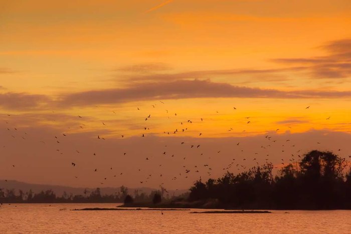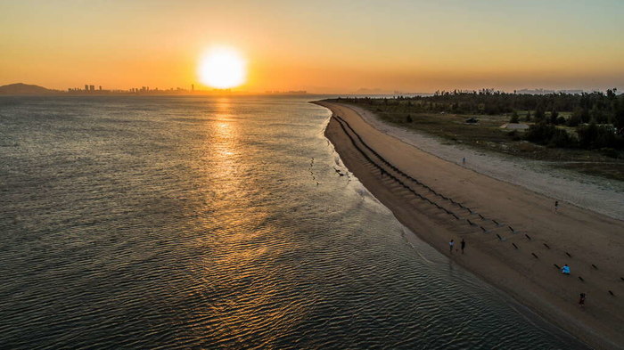 如果问金门人欣赏落日的好去处,肯定会首推慈湖。每年10至3月,前来金门过冬的候鸟便会聚集在慈湖周围,尤其以鸬鹚最多,将近三、四千只的鸟群,依人字排列飞行归巢,其壮观的景象吸引不少游客前来打卡!