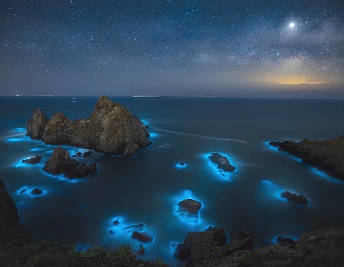 春夏之际马祖沿海岸,夜晚在海浪下不断地拍打下,出现点点蓝色萤光,形成一片如梦似幻的蓝色萤光海,就像是来到了阿凡达场景般。