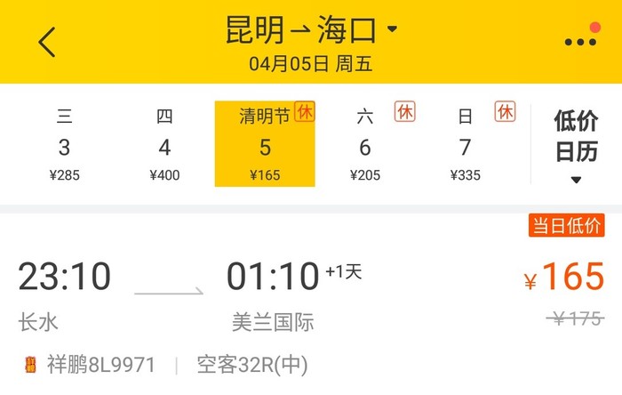 比如昆明飞海口,兰州/西安/太原飞昆明,武汉/重庆飞丽江,这些跨省机票都是这个价!
