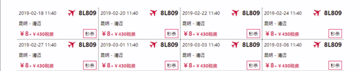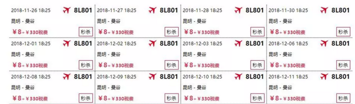 祥鹏秒杀8元,实测含税438元。本期此条航线不含税价已经涨到了88元。