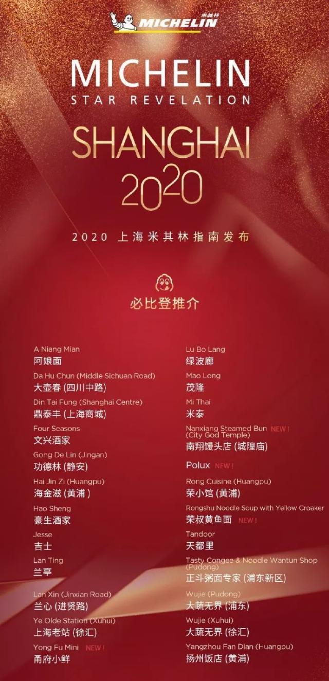 2020上海米其林指南于今日(9月19日)下午15点在上海发布。