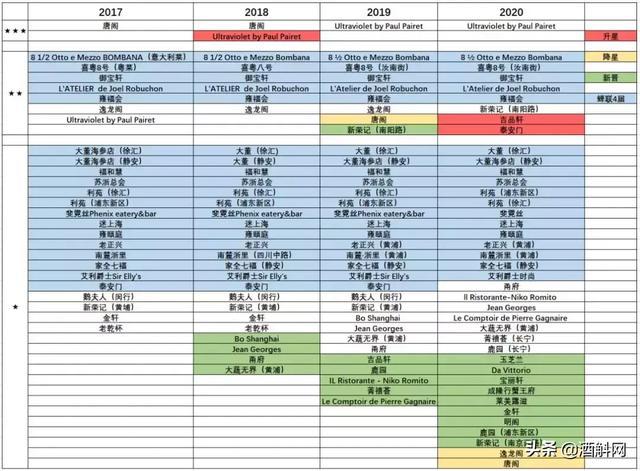 UV仍然独踞三星榜单;二星餐厅数量维持8家不变(吉品轩、泰安门升星,逸龙阁、唐阁降星),在一星方面则有9家新上榜餐厅。