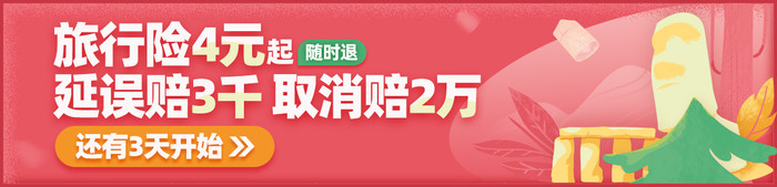 旅行险4元起,航班延误最高赔3000!意外赔120万!医疗费用 100 万,旅行变更 2 万,个人财务 2 万!
