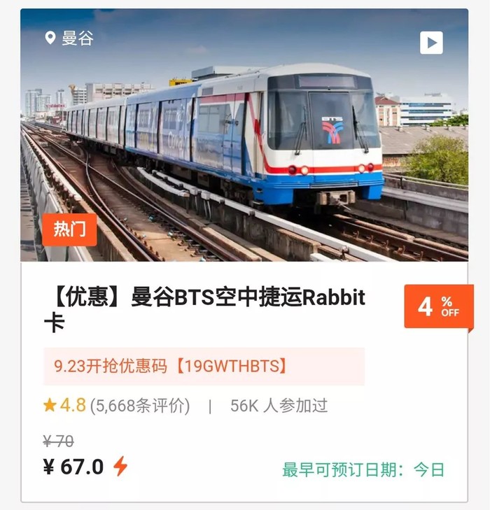 秒杀产品:曼谷BTS空中捷运Rabbit卡