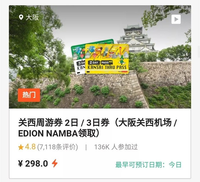 像这款关西周游券2日券 / 3日券,可无限次搭乘各种交通工具,还可享受沿线的350处主要观光设施的优惠折扣,不少游大阪、京都、奈良等地小伙伴必备。